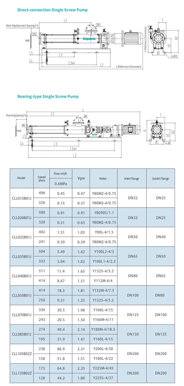 Screw pumps are suitable for transport of media below: media with a big content of solids (max. particle size 30mm); media of different viscosities (1mpas~1,000,000 mpas); media with thixotropy and expansibility; media with shear sensitivity; corrosive media (pH=0~14); media with/without self-lubricity; abrasive media; cohesive media; toxic media; mixed media containing gas, solid or fiber.