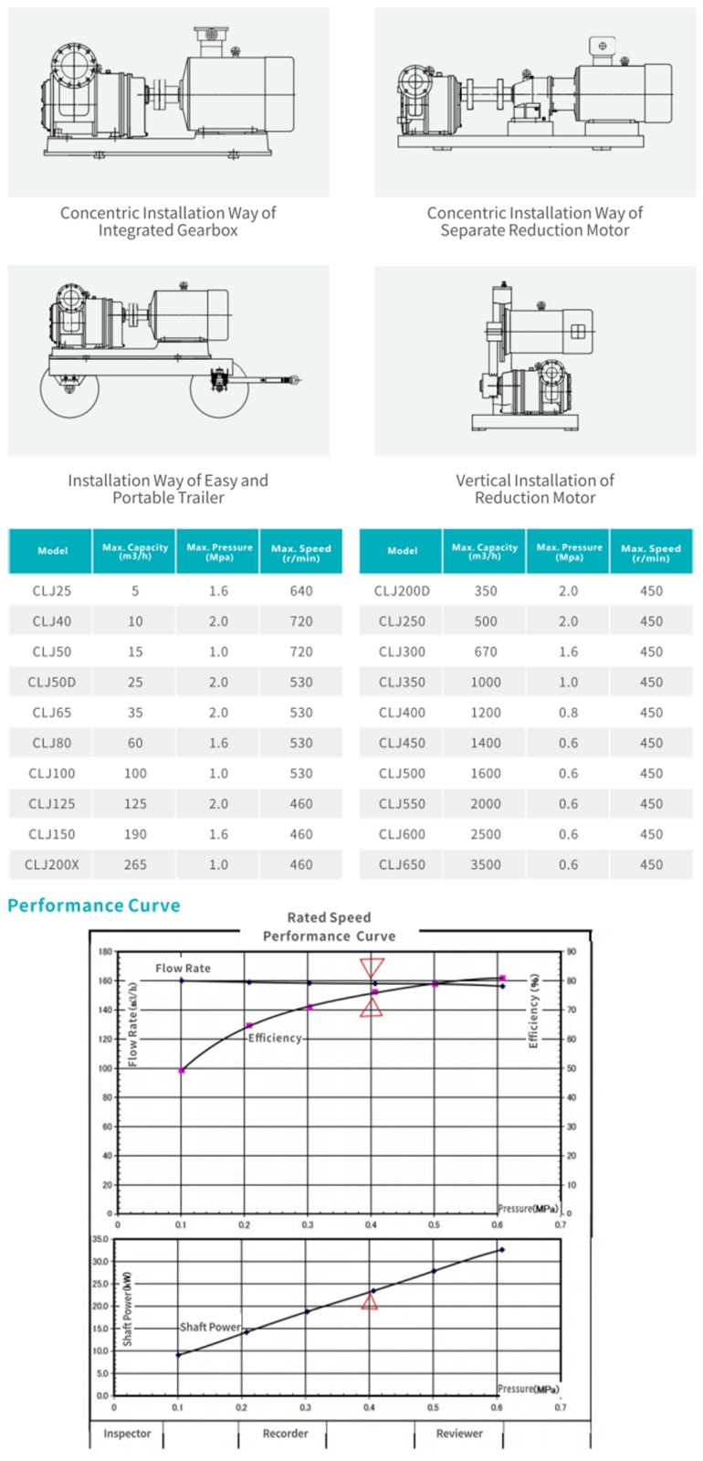 Conilowa lobe pumps, stars among displacement pumps, are designed as per API 676. With a compact structure and a small mounting space, lobe pumps are widely applied to working conditions in multiple industries. With various options for rotor materials and pump mounting types, they can better satisfy actual customer demands. Besides, thanks to the completely symmetric structure, a simple change in driving direction can achieve change in pump transfer direction. Under adoption of modular design, Conilowa lobe pumps includes 5 series and 7 models with a capacity range of 0.1~10000m3/h, a temperature range of 40℃~280℃and the maximum discharge pressure of 2.0MPa. Pumps of a same series share the same rotor, gear, bearing, axial lining board and mechanical sealing.